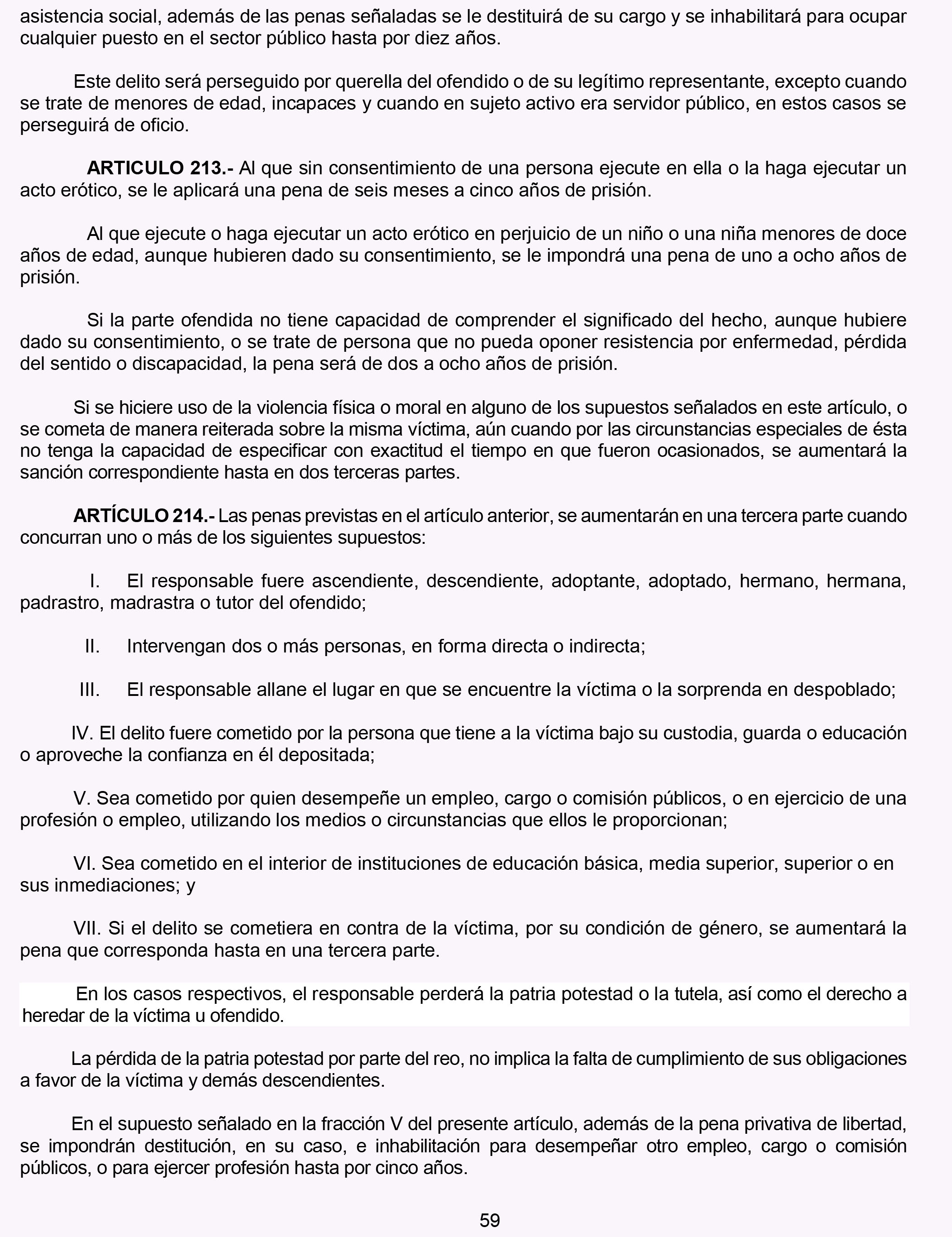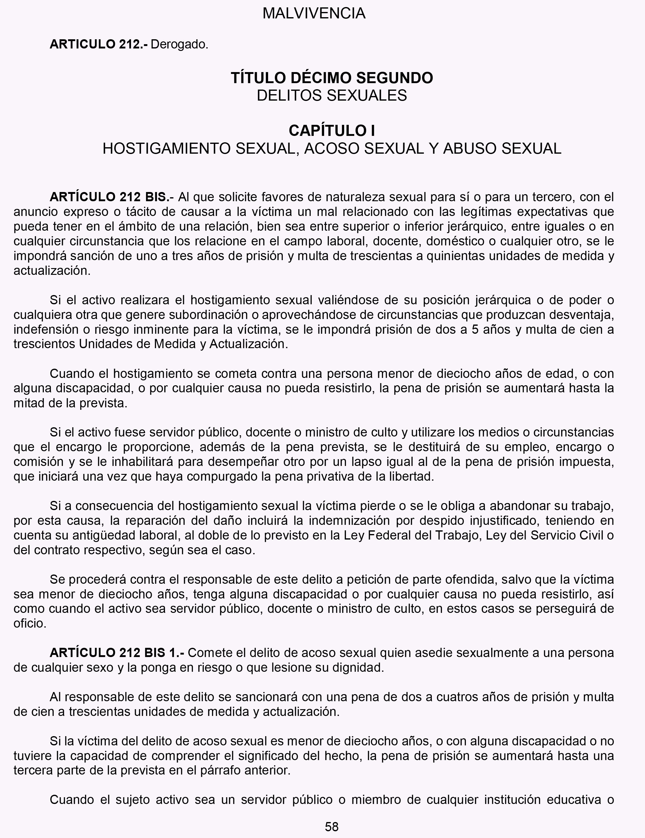 El Código Penal para el Estado de Sonora, en el artículo 212 BIS, establece que si la víctima, a consecuencia del hostigamiento sexual pierde o se le obliga a abandonar su trabajo, por esta causa, la reparación del daño incluirá la indemnización por despido injustificado.