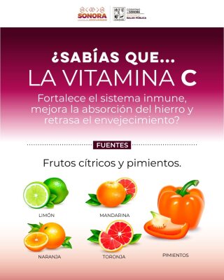 Ante la proximidad de los cambios de temperatura, el Gobierno de Sonora a través de la Secretaría de Salud, hace un llamado a la población a fortalecer su sistema inmunológico y prevenir enfermedades respiratorias mediante el consumo diario de alimentos ricos en vitamina C.
