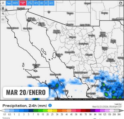 La Coordinación Estatal de Protección Civil indicó que también se pronostica la caída de nieve/aguanieve como afectaciones de dicho sistema en las regiones altas de Sonora.