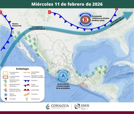 Aunado a esto, indicó, se prevé que el frente frío ocasione descenso de temperaturas y posibles rachas de viento en el estado.
