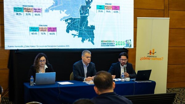 La organización de la sociedad civil Hermosillo ¿Cómo Vamos? dio a conocer los resultados de la Encuesta de Percepción Ciudadana 2025: Hermosillo ¿Cómo Estamos y Hacia Dónde Vamos?, ejercicio que desde hace nueve años mide la percepción ciudadana sobre los principales problemas públicos que impactan la calidad de vida en la capital sonorense.