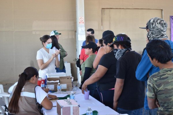 Estas acciones se realizan en coordinación con el sector Salud, mediante brigadas que recorren los distintos campos agrícolas del estado para aplicar el inoculante a las y los jornaleros que arriban durante la temporada de cosechas.