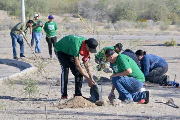 La funcionaria señaló que en esta intervención se sembraron especies propias de la región, como Palo Verde y Mezquite, con el propósito de fortalecer la vegetación del lugar y ayudar a mejorar la calidad del aire.