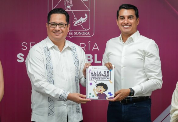 Con el objetivo de fortalecer la detección oportuna y prevención de enfermedades infecciosas en el entorno escolar, el Gobierno de Sonora a través de la Secretaría de Salud Pública (SSP), realizó la entrega de la Guía de Enfermedades Prioritarias en el Entorno Escolar a la Secretaría de Educación y Cultura (SEC).