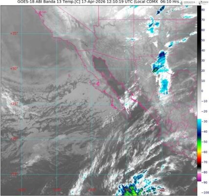 El frente frío 45 ingresará por el noroeste de Sonora y viene asociado con una vaguada en niveles medios y altos de la atmósfera, además de una corriente en chorro polar, lo que generará un aumento significativo en la intensidad de los vientos y un marcado descenso de las temperaturas hacia el final del día.