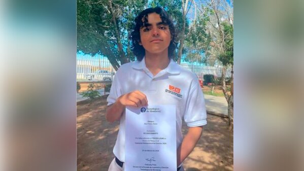 Alan Flores Alaniz, estudiante del Colegio de Bachilleres del Estado de Sonora (Cobach) plantel Caborca, obtuvo el tercer lugar en la final del Concurso Internacional de Ciencias 2026 en la rama de Física, organizado por el Instituto Tecnológico y de Estudios Superiores de Monterrey.